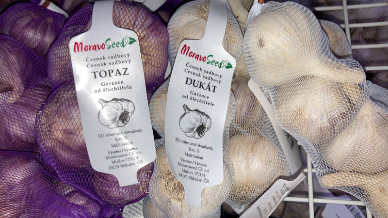 V sortimentu je aktuálně k dispozici 6 odrůd ozimého česneku v různých velikostech balení. Naše nabídka zahrnuje: